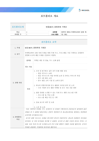 동기 및 포트폴리오 소개: 자매학교와의 문화 축제 주최를 위해 축제 부스, 프로그램을 직접 기획하고 운영하며 경험해 보고자 해당 주제를 선정하게 되었다.