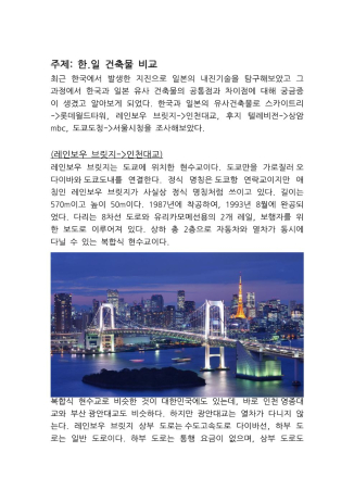 일본을 실제로 탐방한 후 일본과 한국의 대표적인 공공건물을 비교한 보고서이다.