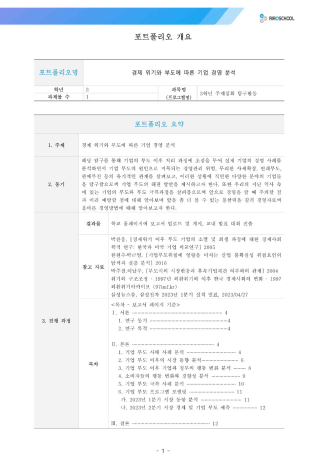 1. 경제 위기와 부도에 따른 기업 경영 분석 - 3학년 주제심화 탐구활동3p