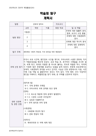 이번 포트폴리오는 고등학교 1학년 시기의 제가 일반사회 분야에 대한 관심을 바탕으로 진행한 학술제의 계획서입니다.