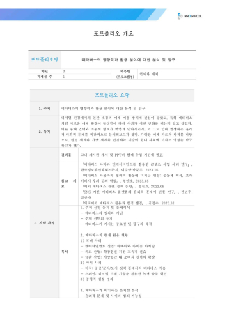 동기: 디지털 환경에서의 인간 소통과 매체 이용 방식에 관심이 많았고, 특히 메타버스처럼 새로운 매체 환경이 등장함에 따라 사회가 어떤 변화를 겪는지 알고 싶었다. 이를 통해 언어와 소통의 형태가 어떻게 달라지는지, 또 그로 인해 발생하는 윤리적·사회적 문제를 비판적으로 분석해보고자 했다. 다양한 매체 자료와 사례를 바탕으로, 현실 세계와 가상 세계를 연결하는 기술이 현대 사회에 미치는 영향을 탐구하고자 했다.