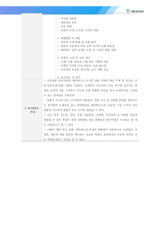 -융합적 사고력 강조: IT기술과 사회윤리, 산업 구조 등 다양한 분야를 융합적으로 분석하며 문제점을 짚고 해결방안을 제