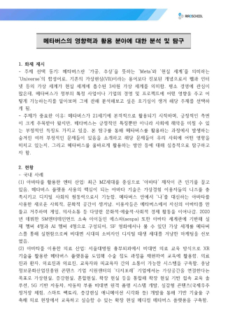 주제: 메타버스의 영향력과 활용 분야에 대한 분석 및 탐구