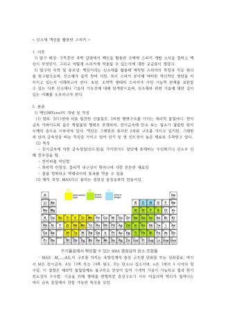 음악 선생님께서 자기 희망 진로와 맞는 음악적 주제를 선택해 발표하는 시간을 주셨는데, 저는 신소재 공학과 진학을 희망했기 때문에 신소재를 활용한 악기나 음악 장치들에 대해 소개하고자 관련 내용을 조사하고 탐구하는 과정을 거쳤어요. 이 보고서의 세부 목차 내용으로는, '1. 신소재 맥신이란 2. 맥신을 활용한 초박막 스피커와 기존 스피커 원리의 비교 3. 맥신의 타 분야에 대한 활용 방안'이 있습니다.