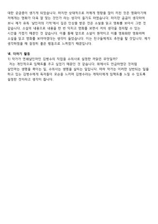 직접 소설과 영화를 감상한 뒤 두 매체의 차이점을 분석하고 보고서로 정리하는 과정은 무척 즐거웠습니다.