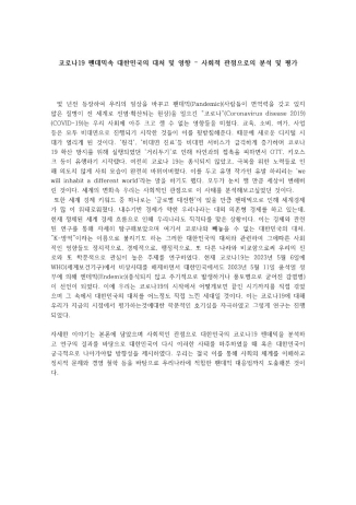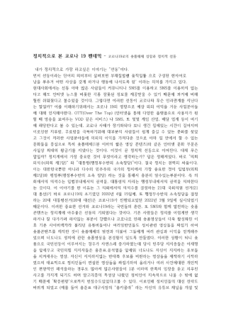 코로나 19 의 사회적 분석과 평가 - 정치/경제/행정적인 측면에서