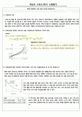 2) 수학2- 화학 반응에서 순간 반응 속도와 반응속도식