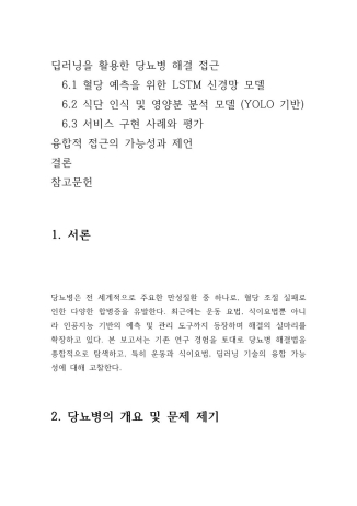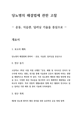 보고서 **「당뇨병의 해결법에 관하여 – 운동, 식습관, 딥러닝을 중심으로」**는 단순한 생명과학 지식을 넘어서 실제 건강 문제를 다양한 관점에서 탐색하고자 했던 시도입니다.