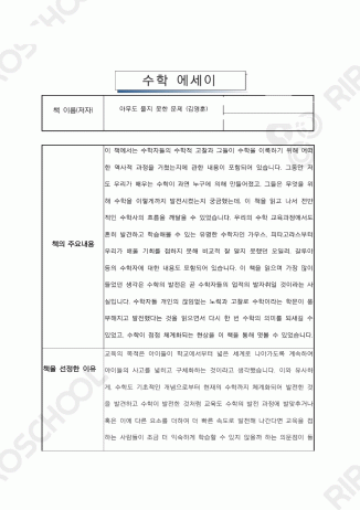 또한, 책과 더불어 에세이를 쓰는 방법에도 도움이 될 수 있을 것 같아 공유하려고 합니다.