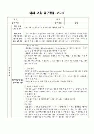 이 보고서는 '미래 교육'을 주제로 하고 있습니다. 사회가 급변하기에 제가 고등학교 재학생이던 시절에 적은 이 보고서 내용과 현재 상황은 다를 수도 있습니다.