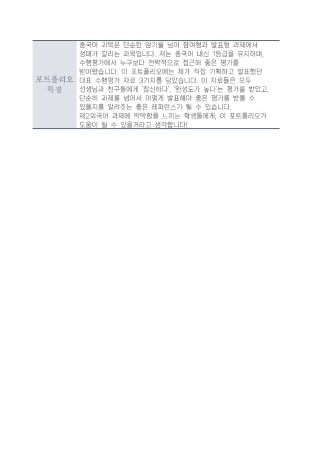 이 포트폴리오에는 제가 직접 기획하고 발표했던 대표 수행평가 자료 3가지를 담았습니다:
