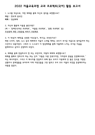 ???? 국어 '학교자율과정' 활동 보고서 (고1)