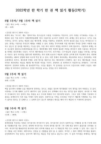 ???? 국어 '한 학기 한 권 책 읽기 활동' 독서록 (고1 2학기)