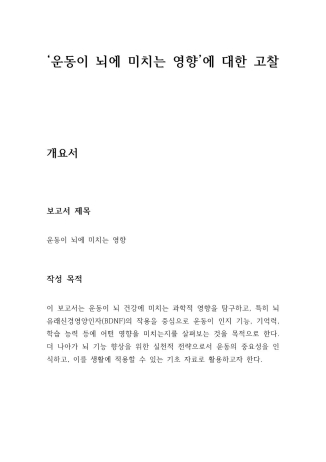 운동이 뇌 기능과 학습 효율에 미치는 영향을 주제로 작성한 과학 기반 포트폴리오입니다.