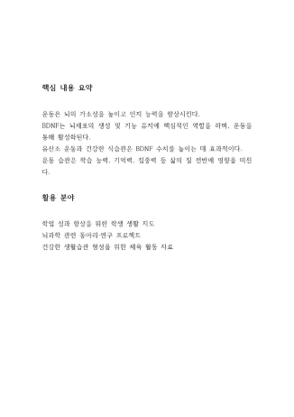 운동을 하면 실제로 기억력과 집중력이 향상되고, 뇌 속에서 BDNF와 같은 신경영양인자가 활발하게 분비된다는 과학적 사실을 체계적으로 조사하고 분석하였습니다.
