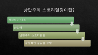 호모 스토리텔리쿠스라는 수업의 일환으로 진행된 발표자료입니다. 호모 스토리텔리쿠스에서 배운 내용인 낭만주의 스토리텔링을 기반으로 구성된 발표 자료와 발표 대본입니다. 말이 낭만주의 스토리텔링이지, 사실 문학의 역사와도 관련있는 발표라, 국어 시간이나 경우에 따라서는 역사 시간에 쓸만한 발표로도 어느정도 맞다고 생각합니다!