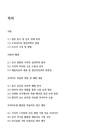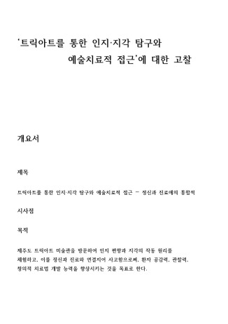 단순한 전시 관람이 아닌, ‘트릭아트’라는 시각 예술을 통해 인지 심리학, 감각 통합, 공감 능력, 예술치료의 임상 적용 가능성까지 탐구한 자기 주도적 활동 결과물입니다.