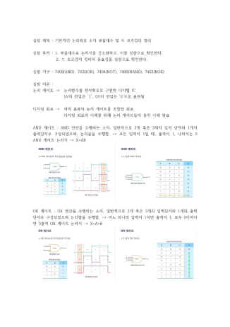 1. 전기 및 전자 실험 보고서 (논리연산, 부울대수, 카르노맵)3p