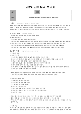 저는 실험 설계부터 관찰, 결과 분석까지 전 과정을 주도하며 스스로 문제를 정의하고 해결하는 힘을 기를 수 있었고, 그 과정에서 과학탐구활동보고서를 작성하며 저만의 생기부를 만들어갈 수 있었습니다.