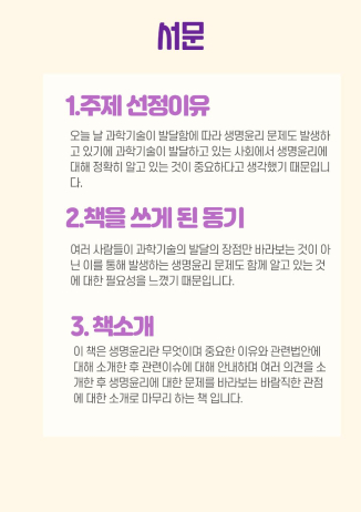 생명과학을 공부하는 사람이라면 생명윤리에 대해서도 함께 공부하는 것이 필수적입니다. 생명윤리가 중요한 것은 알지만 이에 대해 자세히 알지 못하였다면 함께 공부해보는 것은 어떨까요?