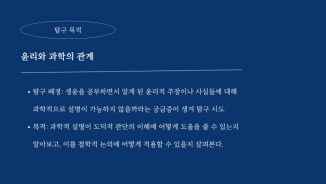 윤리의 과학적인 면을 탐구 보고서로 작성하고 싶은 학생