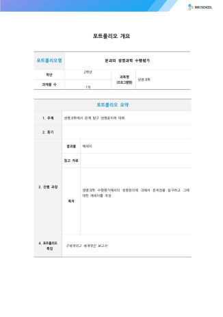 문과의 생명과학 수행평가