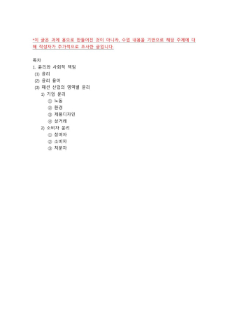 생활과 윤리, 윤리와 사상 등 윤리 과목과 패션 및 의류와 연계할 수 있는 보고서입니다. 이 보고서는 제가 한양대학교 의류학과에서 배운 내용을 기반으로 만들었기 때문에, 그대로 사용하시면 안 됩니다!! 해당 포트폴리오는 주제 찾는 데에 가장 좋을 것 같아요!