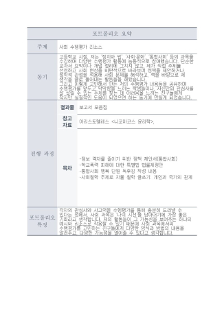 사회 수행평가 포트폴리오: 실천하는 사고력의 기록