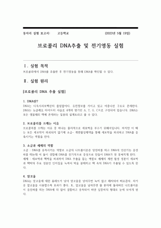 - 브로콜리 DNA 추출 및 전기영동 실험