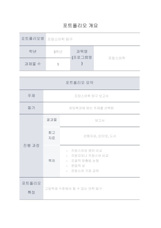 이 포트폴리오는 제가 3학년 때, 진로를 불어불문학과로 완전히 설정한 이후에 적었던 어학 세특입니다.