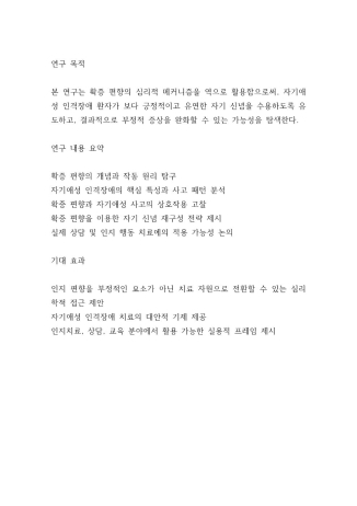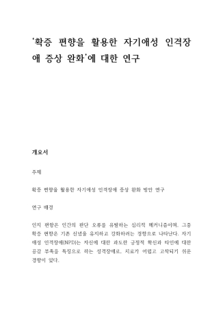 인지심리학의 핵심 개념 중 하나인 확증 편향에 주목하여, 이를 자기애성 인격장애의 치료적 도구로 활용할 수 있는 가능성에 대해 탐색하고자 했습니다.