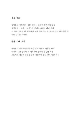 혈액형별 성격 및 주의력, 스트레스 반응 비교