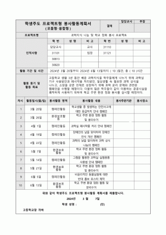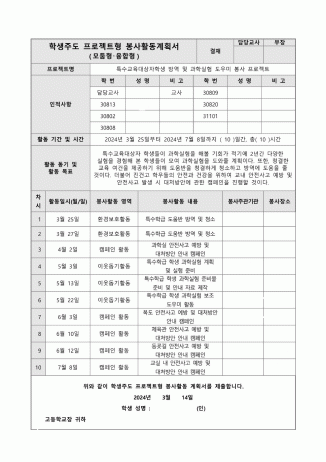 (1) 3학년 학생주도 프로젝트봉사 계획서 (과학지식)