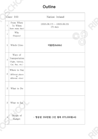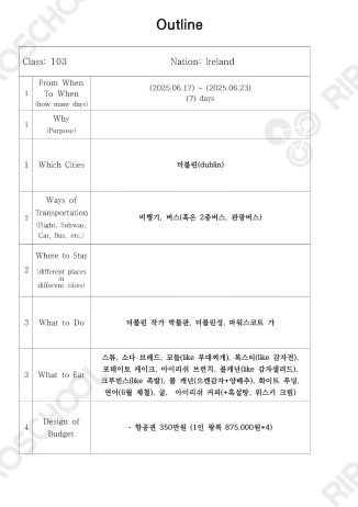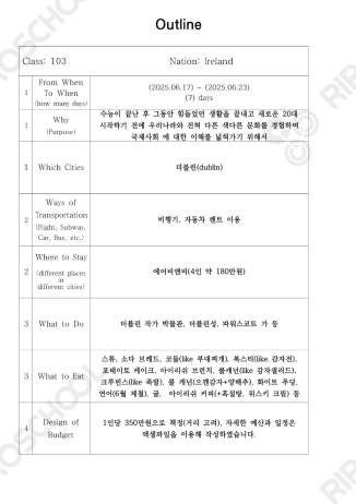 1. 103 Team Ireland 여행계획 아웃라인3p