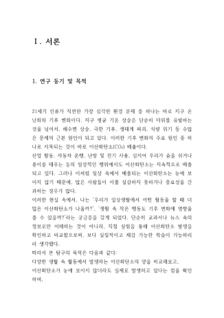 고등학교 시절, 기후 변화와 환경 문제에 대한 뉴스를 접하며 '내가 할 수 있는 일은 무엇일까?'라는 질문을 품었습니다. 이 질문은 과학적으로 검증하고 싶은 호기심으로 이어졌고, 일상 속 작은 행동들이 실제로 얼마나 많은 이산화탄소를 배출하는지 실험을 통해 직접 관찰하게 되었습니다.