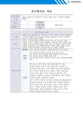 문제를 윤리적 관점에서 분석함. 결론: 전기차 산업에 필수적인 차량용 반도체(MCU)의