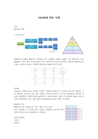 DRAM: DRAM의 기본 구조(셀 구성, WL/BL, 캐패시터, 트랜지스터, Sense Amplifier)를 분석하고, 데이터의