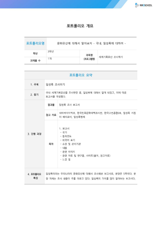 이 보고서는 국내 세계기록유산인 일성록에 대해서 조사한 보고서입니다. 대체로 일성록에 관한 내용이 주를 이루고 있으며, 비교적 느낀 점은 일성록에 관한 내용에 비하면 적은 편이긴 합니다만, 역사 관련 활동을 할 때 참고하시면 좋을 거 같습니다.