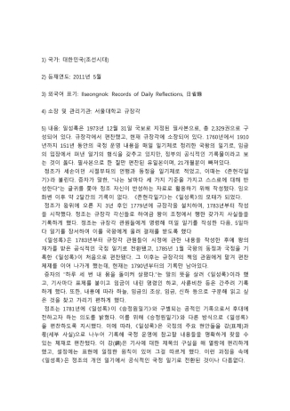 문화유산에 대해서 알아보자 - 국내, 일성록에 대하여 -
