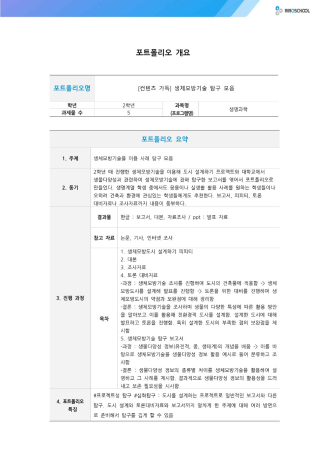 2학년 때 진행한 생체모방기술을 이용해 도시 설계하기 프로젝트와 대학교에서 생물다양성과 관련하여 생체모방기술에 관해 탐구한 보고서를 엮어서 포트폴리오로 만들었습니다. 생명계열 학생 중에서도 응용이나 실생활 활용 사례를 원하는 학생들이나 오히려 건축과 환경에 관심있는 학생들에게도 추천합니다. 보고서, 피피티, 토론 대비자료나 조사자료까지 내용이 풍부합니다.