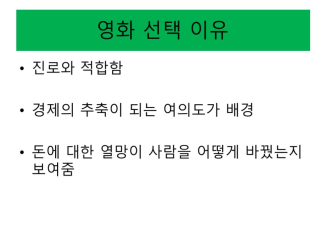 경제의 주축이 되는 여의도 증권가에서 벌어지는 일을 다룬 영화 을 인상적으로 보게 되어