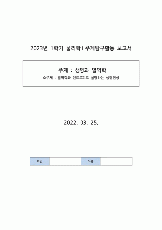 - 생명과 열역학 : 열역학과 엔트로피로 설명하는 생명현상