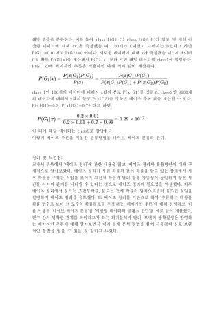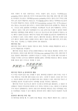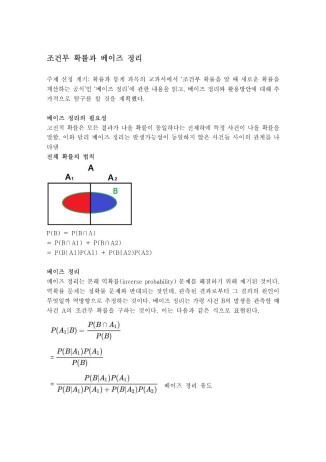 보고서는 베이즈 정리의 기초 개념과 유도를 체계적으로 설명하고, 사전확률, 우도, 사후확률의 의미를 명확히 하며 이를 기반으로 한 베이지안 추론 과정을 소개합니다. 베이지안 추론은 사전 지식을 바탕으로 새로운 증거가 추가될 때마다 믿음을 갱신하는 과정으로, 인공지능, 의료 진단, 문서분류, 기상 예측 등 다양한 분야에서 널리 활용됩니다. 특히, 나이브 베이즈 분류기를 통한 데이터 분류 예제를 들어 실용적 적용 방식을 구체적으로 제시한 점이 돋보입니다.