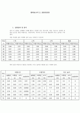 따라서 물리학 실험으로 포물선 운 실험을 진행했을때 나오는 결과와 분석을 활용해서 본인의 진로와 엮기 바란다.