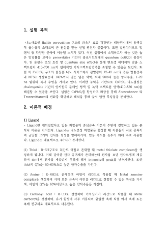 양자점 합성에 관한 내용으로서 유기 소재에서 매우 중요하게 다뤄지는 부분입니다.