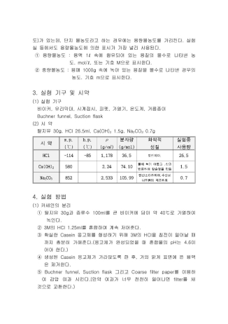 ③ 확실한 Casein 응고체를 형성하기 위해 3M의 HCl을 침전이 일어날 때까지 충분히 가해준다.(응고체가 완성되었을 때 혼합물의 pH는 4.6이어야 한다.)