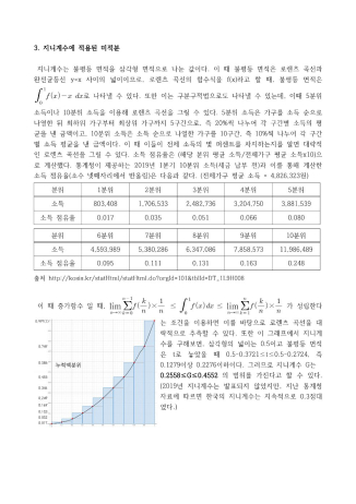사회 불평등 현상과 관련해 로렌츠 곡선과 지니계수를 통하여 소득 분위에 따른 소득 점유율에 대해