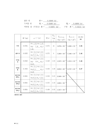 질량,길이, 주기, 회전 관성 모멘트, 오차값을 구한다.