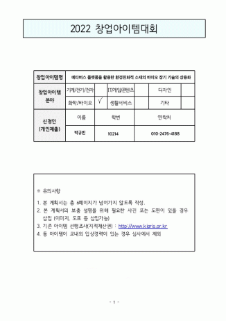 안녕하세요. 이 보고서는 충청남도 중소기업벤처부 청장상을 수강한 사업계획서입니다.