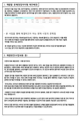 해결할 문제 (포인트) : 장기 이식을 받는 수요 대비 공급의 수가 너무 적음, 이식 거부 반응으로 인한 장기 이식의 문제